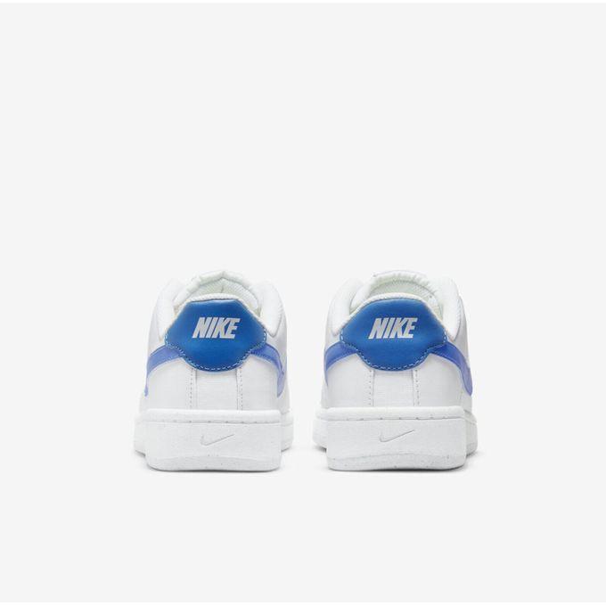 Quand le passé est remis au goût du jour. La Nike Court Royale 2 Next Nature est fabriquée avec au moins 20 % de son poids en matières recyclées. Nous avons intentionnellement remplacé le cuir à fort impact par du cuir synthétique pour un look épuré, lisse et facile à porter. Le grand logo Swoosh apporte une touche rétro.